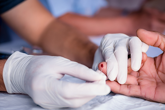 - A small blood sample is collected and applied to a special test card.